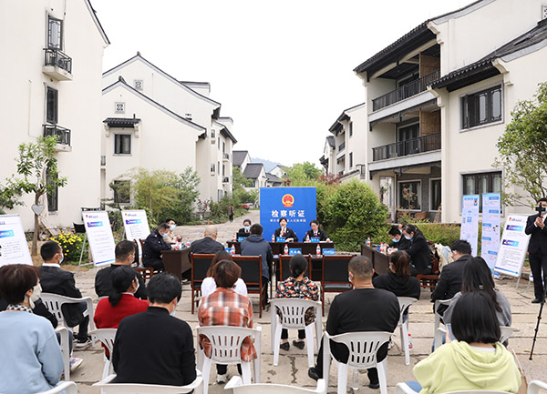 浙江省湖州市安吉縣人民檢察院踐行鄉(xiāng)村微檢察,將公開(kāi)聽(tīng)證會(huì)開(kāi)進(jìn)鄉(xiāng)村,讓法律服務(wù)的“煙火氣”延伸到大街小巷。 葉健 攝
