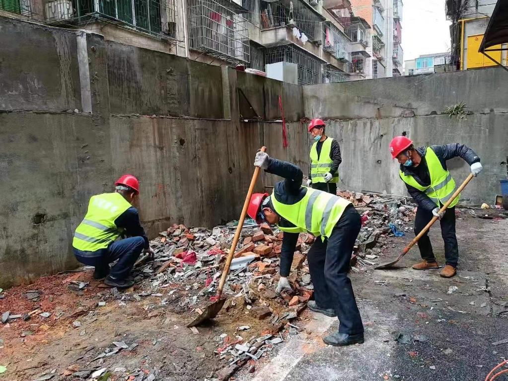 沅江市瓊蓮勞務有限責任公司的勞務工人進行保潔清理工作。