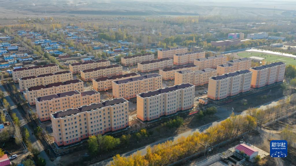 這是新疆昌吉市阿什里鄉(xiāng)天鵝小鎮(zhèn)(無人機(jī)照片,2020年10月16日攝)。天鵝小鎮(zhèn)是由福建援疆泉州分指揮部支援建設(shè)的牧民定居項目。新華社記者 丁磊 攝