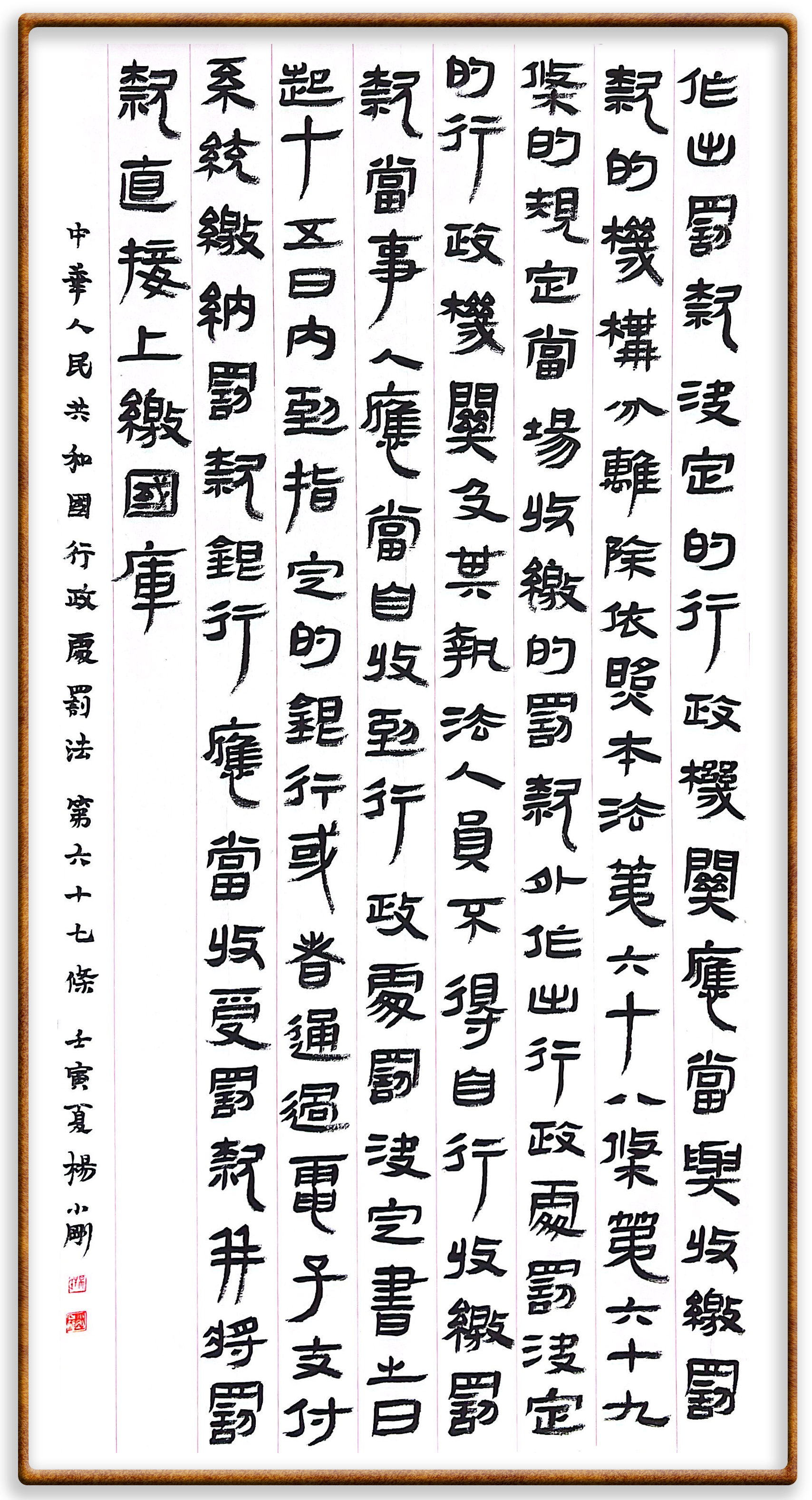 繼《中華人民共和國民法典》《中華人民共和國土地管理法》《中華人民共和國土地管理法實(shí)施條例》《中華人民共和國法律援助法》之后,法治日報社聯(lián)合北京市司法局、北京書法家協(xié)會,將筆端對準(zhǔn)《中華人民共和國憲法》和《中華人民共和國行政處罰法》。