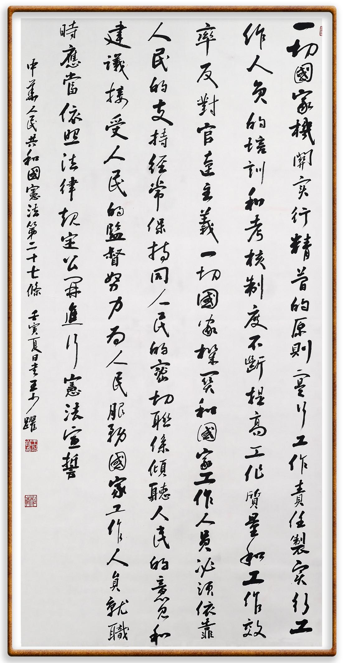 繼《中華人民共和國民法典》《中華人民共和國土地管理法》《中華人民共和國土地管理法實施條例》《中華人民共和國法律援助法》之后,法治日報社聯(lián)合北京市司法局、北京書法家協(xié)會,將筆端對準《中華人民共和國憲法》和《中華人民共和國行政處罰法》。