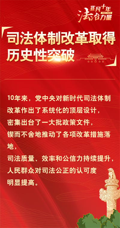法治網(wǎng)精心策劃制作十期海報(bào),帶您一起領(lǐng)略非凡十年的法治力量!今天為您奉上第六期“司法體制改革取得歷史性突破”。